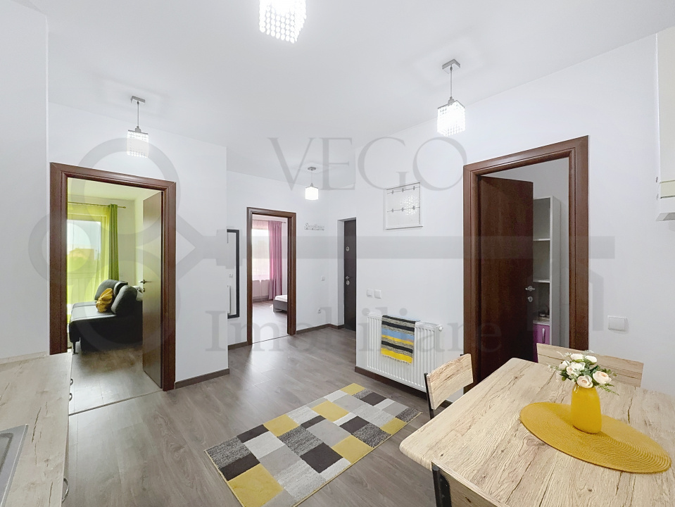 VEGO IMOBILIARE vă prezintă spre închiriere și vă stă la dispoziție cu acest apartament de 2 camere, complet decomandat, poziționat la etajul 1 al unui imobil recent finalizat, dispus după regimul de înălțime P+3, situat în cartierul Borhanci, oferind acces facil asupra multor puncte de interes, situat la o distanță de câteva minute de mijloacele de transport în comun, magazine Mega Image și Profi în proximitatea blocului, farmacii, spații verzi și multe alte obiective importante.